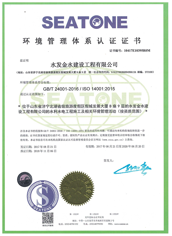 水發(fā)金水建設(shè)工程有限公司 三體證書(shū)-環(huán)境