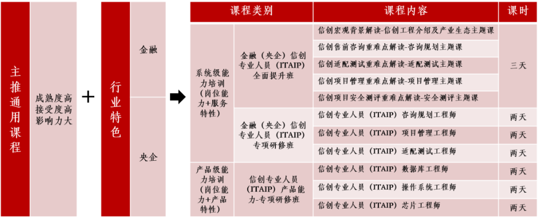 在信創人才培養方面,隨著行業信創的加速推進,對于人才培養的要求愈加專業化、精細化。華勝信創研究院為緩解行業信創加速推進過程中的專業人才緊缺問題,將已在市面上成功實踐,成熟度高、影響力大的主推通用課程與金融、央企行業特色相結合,打造全新行業信創人才培養課程體系。此外,還有豐富的信創數據庫等跨品牌通用型產品培訓課程,以及信創實訓基地等。
