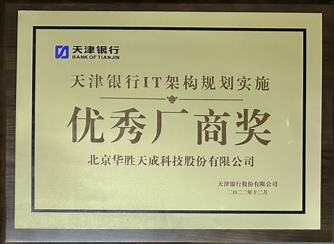 華勝天成獲得了天津銀行頒發的優秀廠商獎及感謝信