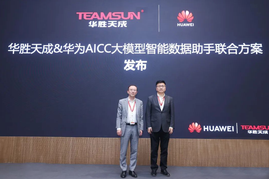 華勝天成集團(tuán)董事長(zhǎng)王維航、華為軟件總裁馬寧在現(xiàn)場(chǎng)發(fā)布華為AICC&華勝天成iDC智能數(shù)據(jù)助手