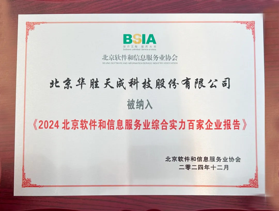 華勝天成入選“2024北京軟件和信息服務業綜合實力百家企業”榜單