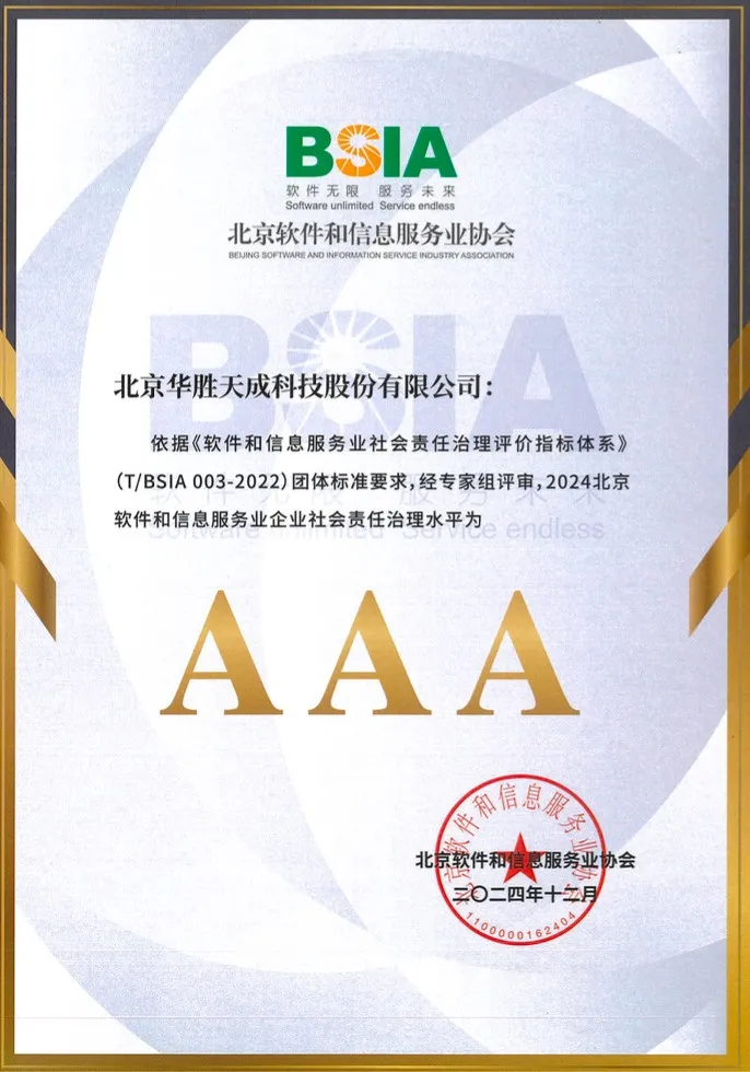 華勝天成獲得“2024北京軟件和信息服務業企業社會責任治理水平AAA級”認證