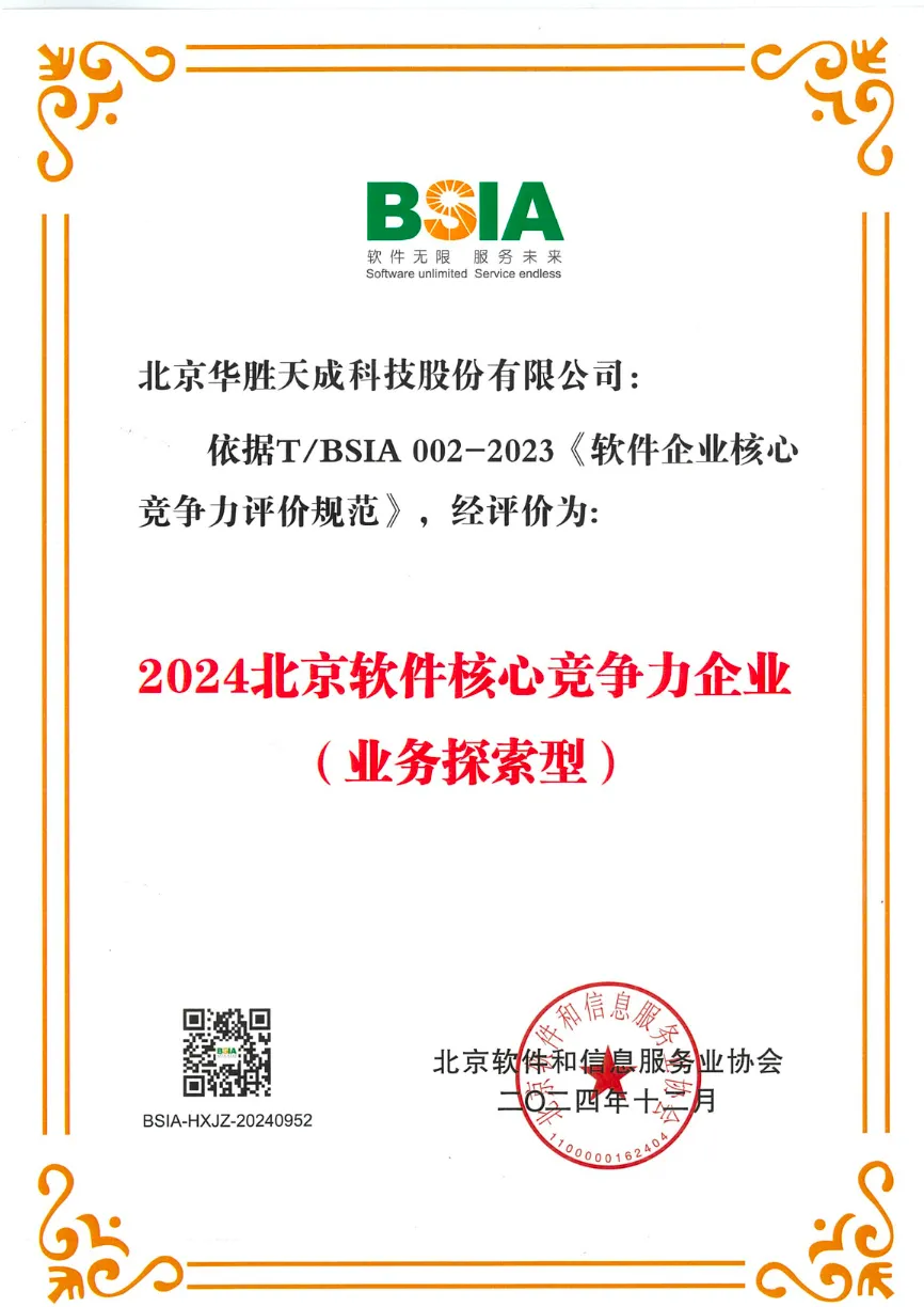 華勝天成榮獲“2024北京軟件核心競爭力企業(業務探索型)”稱號