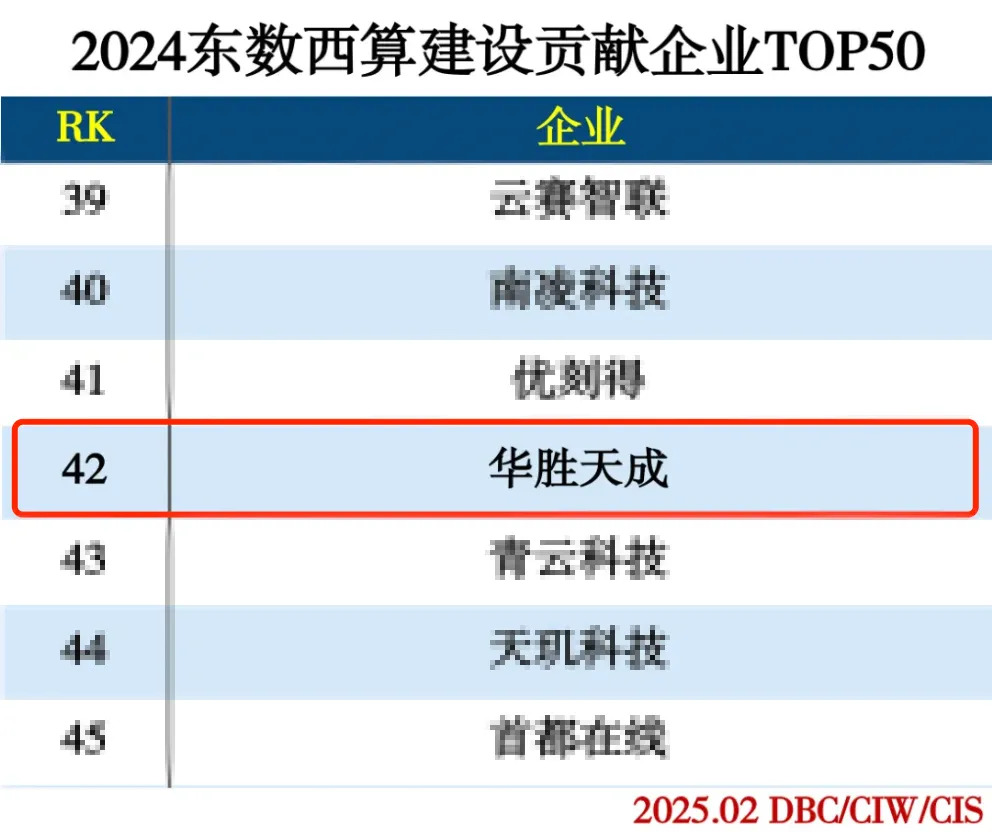 華勝天成榮登“2024東數西算建設貢獻企業TOP50”榜單