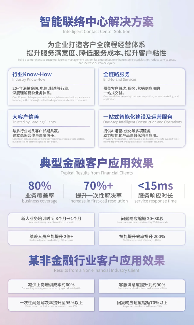 未來(lái),公司將持續(xù)推進(jìn)AI技術(shù)創(chuàng)新,推動(dòng)智能聯(lián)絡(luò)中心向更智能、更人性化方向發(fā)展,為全球企業(yè)的數(shù)智化轉(zhuǎn)型注入新動(dòng)能。