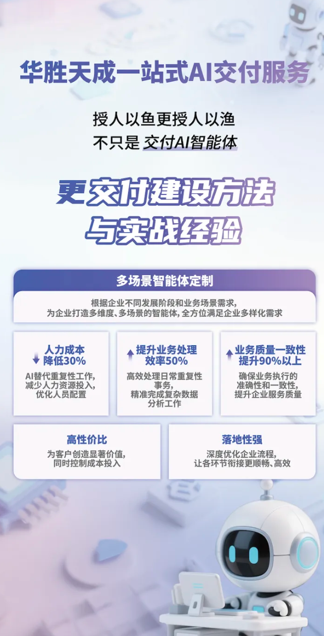 針對這一痛點,華勝天成依托二十余年行業(yè)數(shù)字化與智能化經(jīng)驗,創(chuàng)新推出“一站式AI交付服務(wù)”,涵蓋算力部署與管理、大模型部署與調(diào)優(yōu)、知識庫構(gòu)建與更新、工作流編排與優(yōu)化、智能體搭建與協(xié)同,以及人才培訓(xùn)與賦能的全流程服務(wù),為企業(yè)提供“可運行、可應(yīng)用、可持續(xù)創(chuàng)造價值”的整體服務(wù)方案。