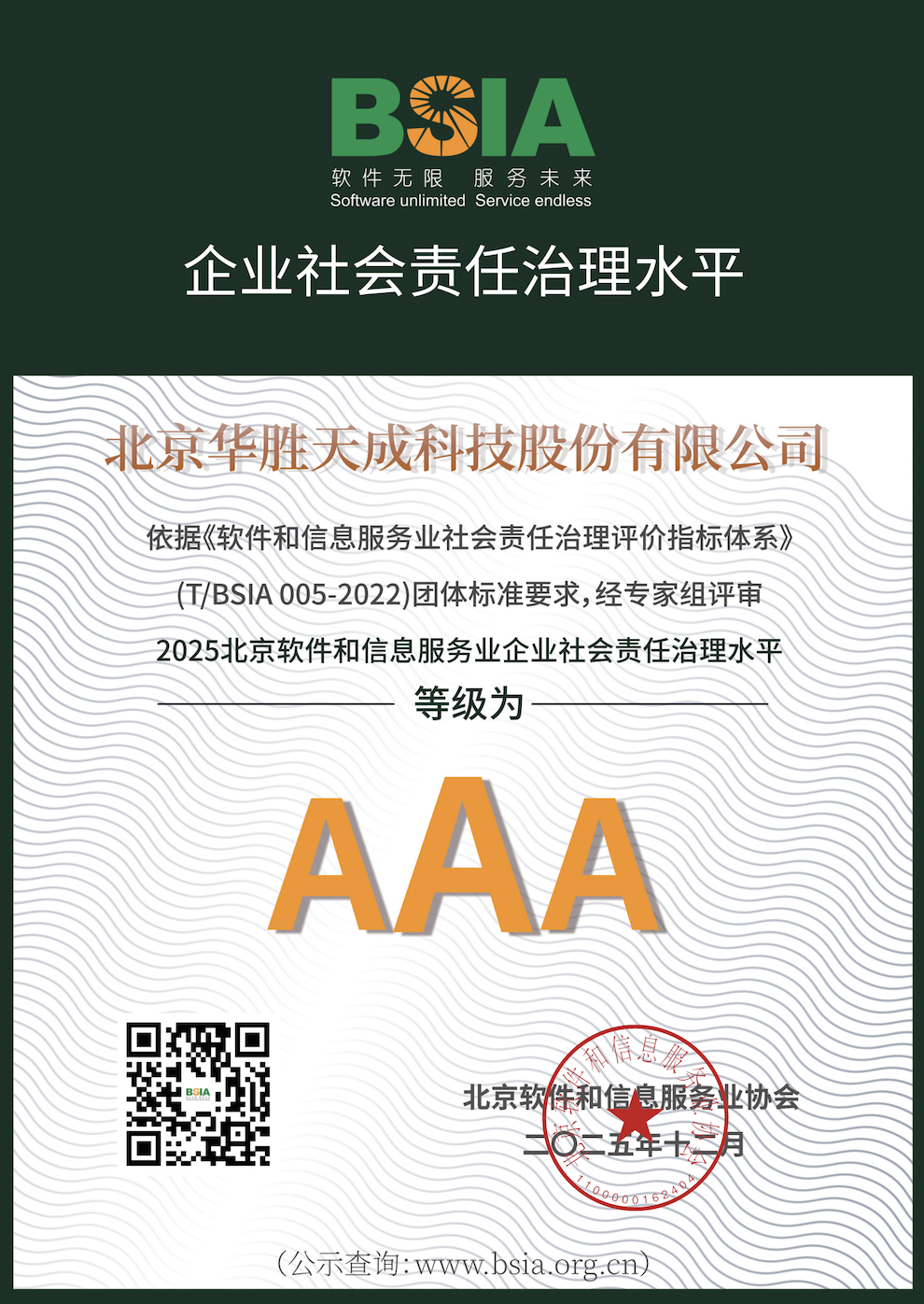 華勝天成獲得“2025北京軟件和信息服務(wù)業(yè)企業(yè)社會(huì)責(zé)任治理水平AAA級(jí)”認(rèn)證