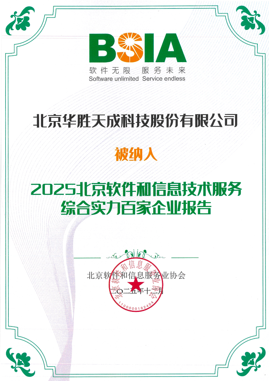 華勝天成入選“2025北京軟件和信息服務(wù)業(yè)綜合實(shí)力百家企業(yè)”