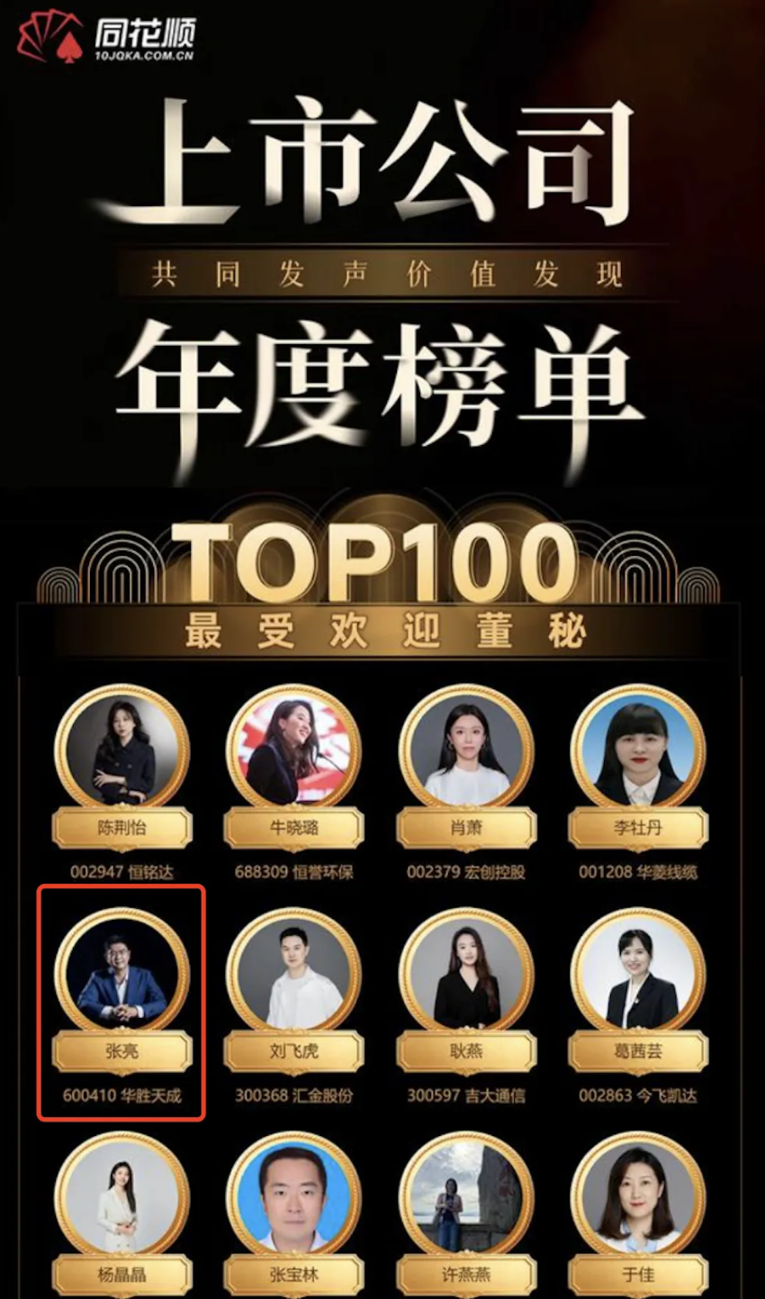 華勝天成董秘張亮榮獲“最受歡迎董秘TOP100”稱號。