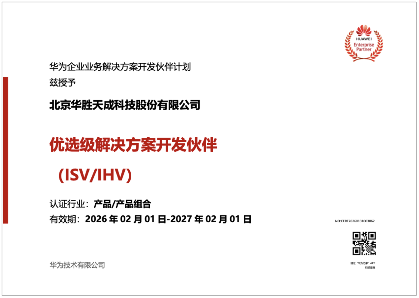 華勝天成獲得華為“2026年優(yōu)選級(jí)解決方案開發(fā)伙伴(ISV/IHV)”