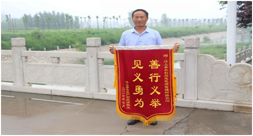 8月1日,汶上縣中都水務發展有限公司院內熱鬧非常,渠莊戶村民渠XX攜其家人將一面寫著“善行義舉 見義勇為”的錦旗送到了陸敦嶺手中,以感謝其救命之恩。
