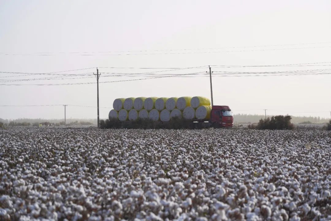 ▲新疆阿克蘇·運(yùn)送棉包的貨車