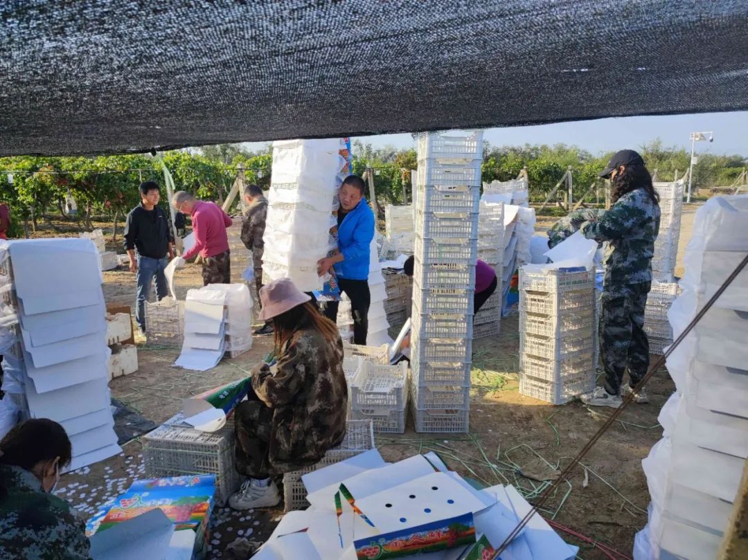 ▲雙節期間,雙河水發集團權屬果蔬公司全體員工在新疆生產建設兵團第五師雙河市葡萄基地搶收葡萄。