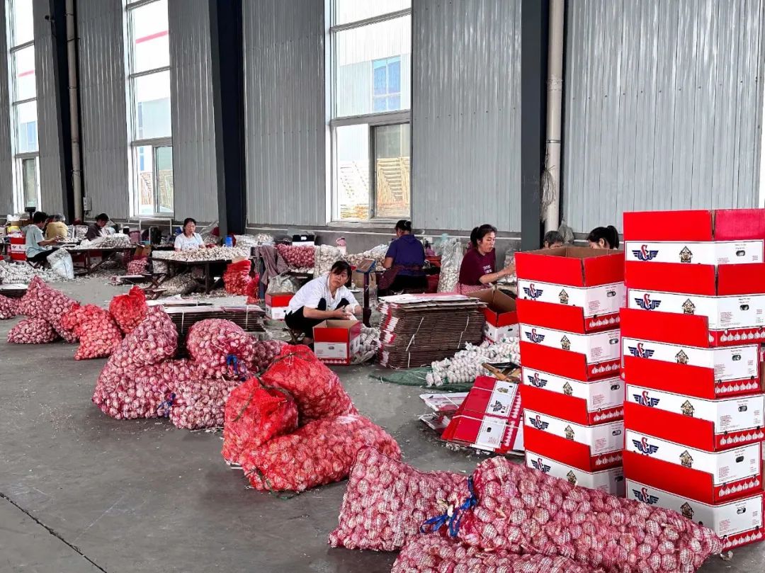 ▲水發和福隆假期不停工,開足馬力忙生產,繼續大蒜加工,交付進出口貿易訂單。