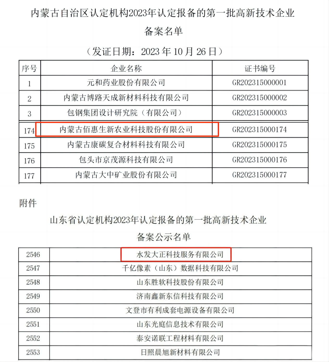近日,國家高新技術企業認定管理工作網公示了擬認定高新技術企業名單,水發農業集團2家權屬公司內蒙古佰惠生新農業科技股份有限公司和水發大正科技服務有限公司,被認定為國家高新技術企業。